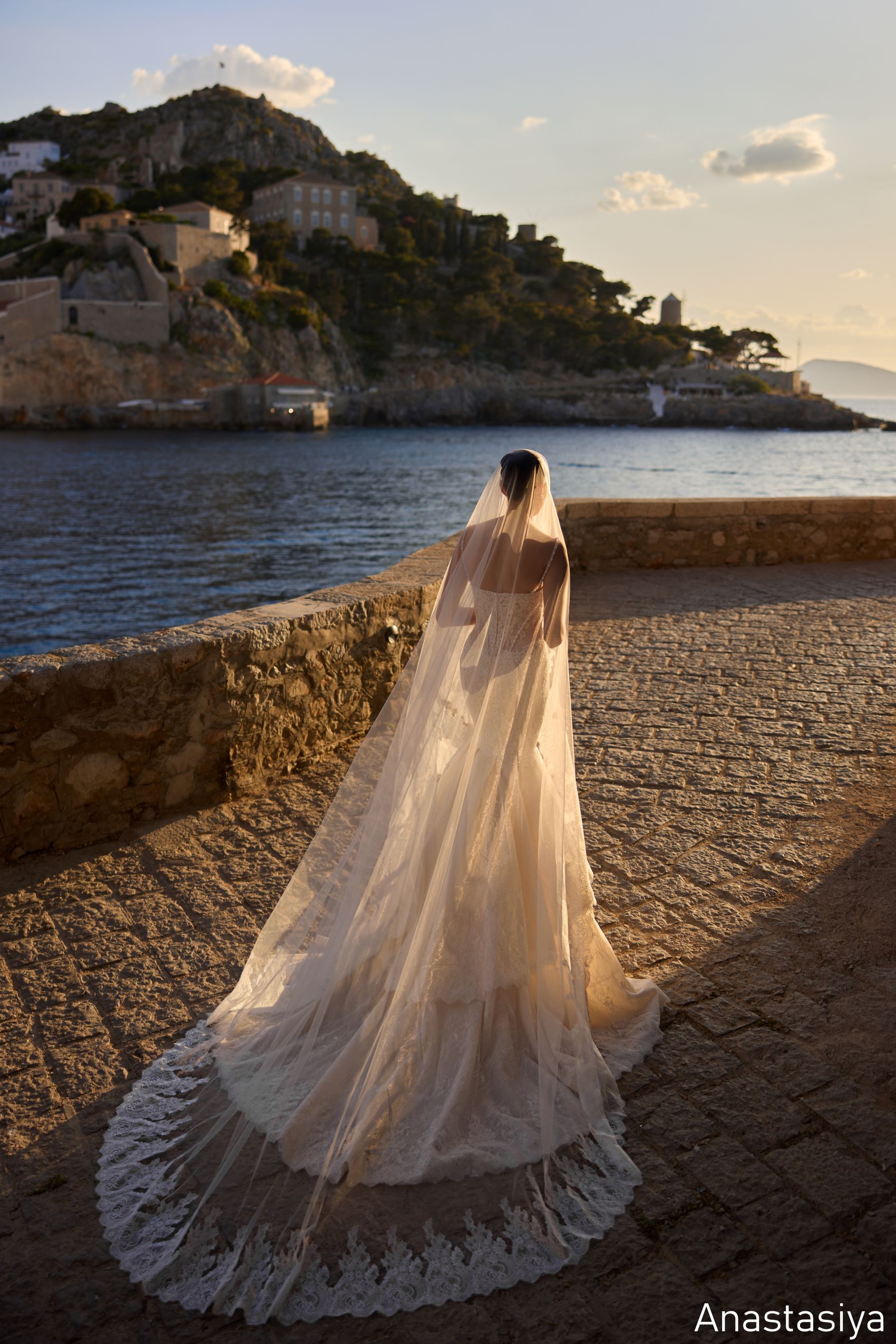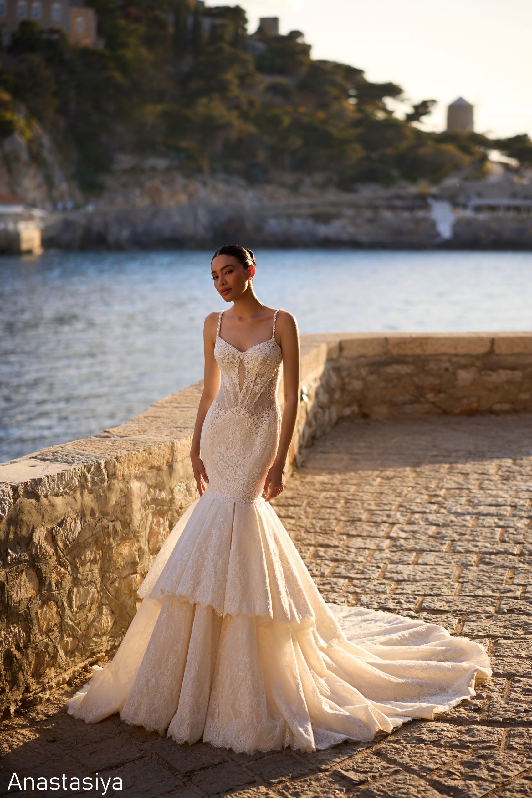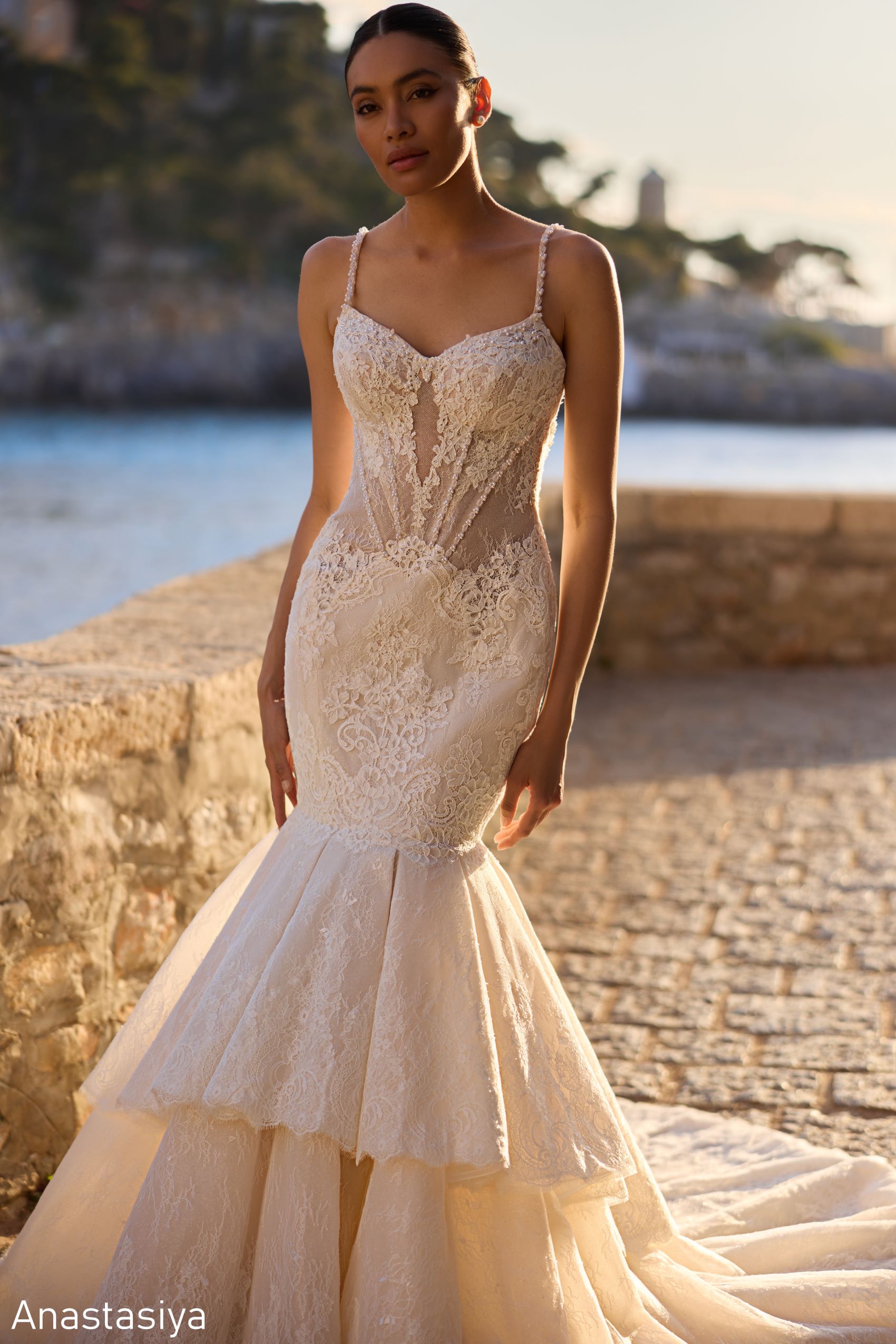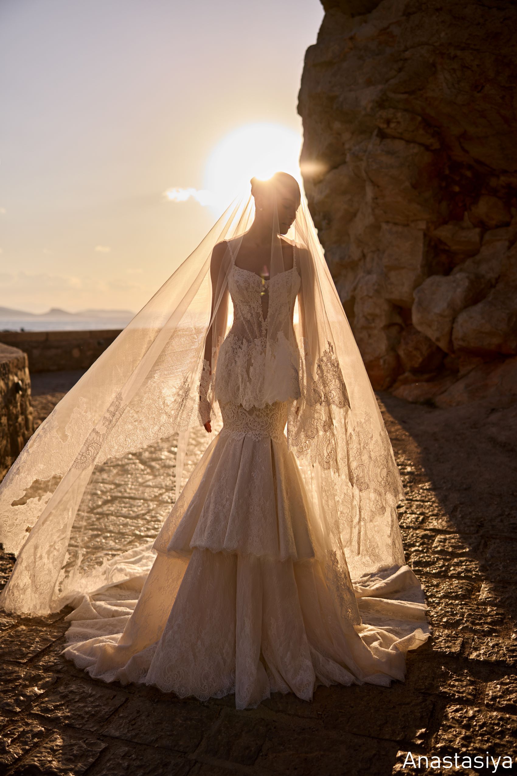 Completată de un voal lung din tul cu margini din dantelă, rochia Anastasiya este alegerea ideală pentru miresele care își doresc o apariție de neuitat, demnă de un castel și o nuntă de poveste.