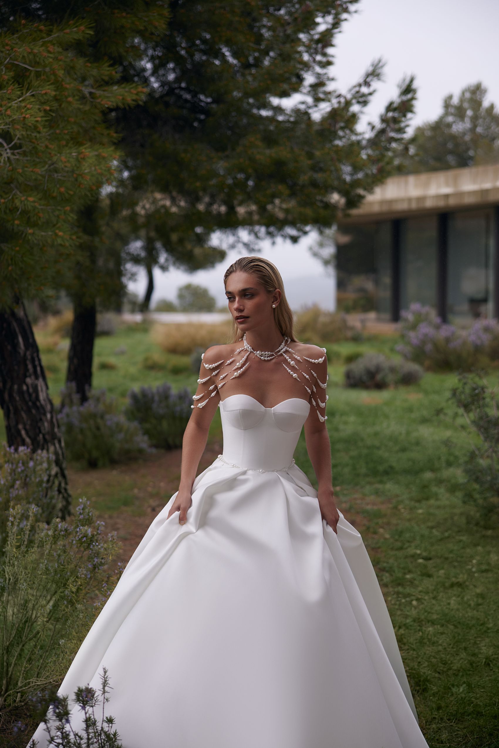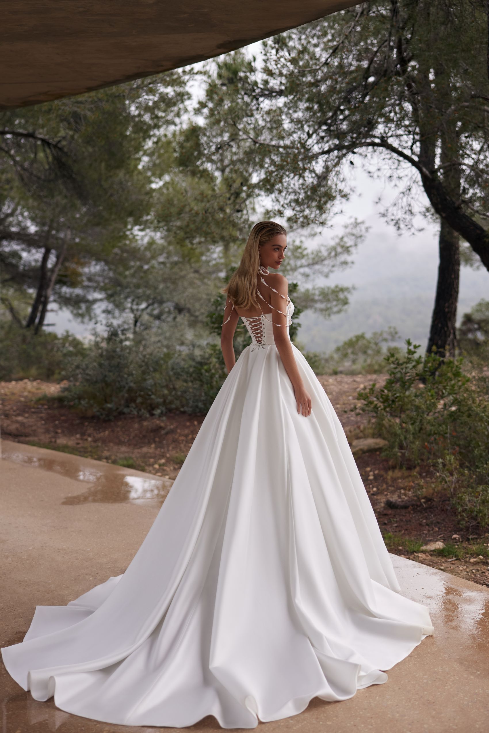 Vallery este o rochie statement, care îmbină simplitatea modernă cu un aer regal. Corsetul sculptat și fusta amplă din material premium creează o prezență puternică, elegantă și foarte feminină.