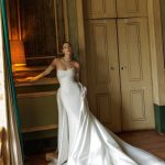 Rochia Artemis este expresia supremă a eleganței contemporane. Cu o siluetă sirenă care conturează grațios formele, acest model îmbină un corset delicat, brodat minuțios, cu o trena spectaculoasă din satin regal. Contrastul dintre textura bogată și fluiditatea materialului creează un efect vizual cuceritor. Ideală pentru mireasa care își dorește o apariție impunătoare, sofisticată și memorabilă.