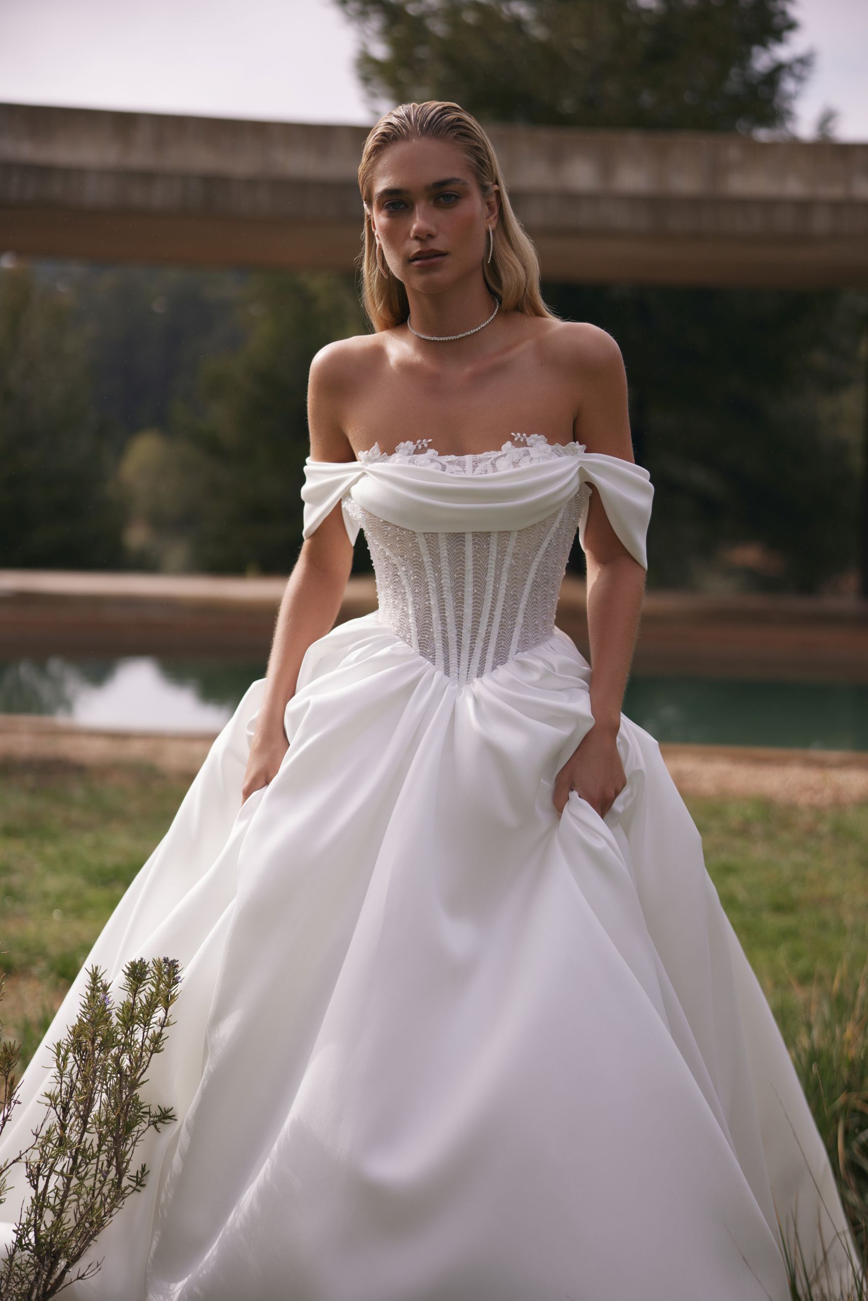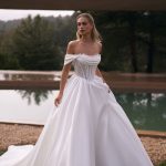 Este rochia perfectă pentru mireasa care își dorește un look cu adevărat regal, dar fără a renunța la liniile moderne și curate. Cooper pune în valoare talia, aduce volum impecabil și oferă o prezență demnă de o mireasă care își dorește să impresioneze încă din primul pas spre altar.