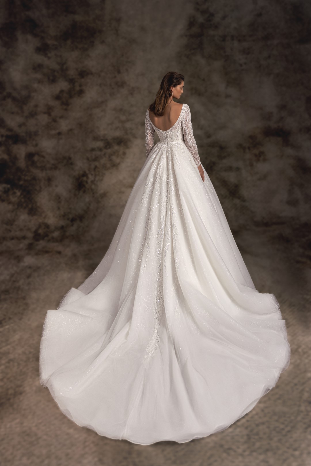 Francesca este o incununare a elegantei desavarsite. Asemeni unei infuzii de romantism, rochia este innobilata cu dantela pretioasa si fusta cu glitter.
