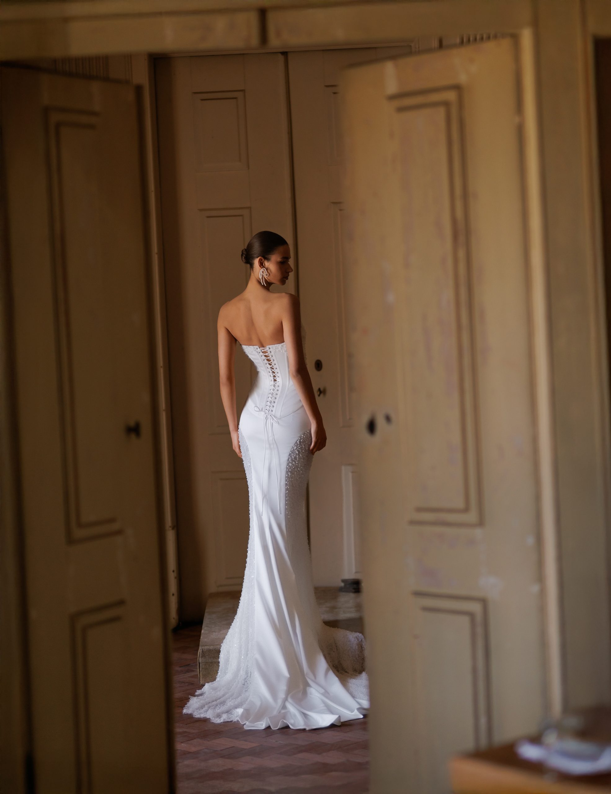 Gaia Long este alegerea perfectă pentru miresele care vor să îmbine senzualitatea cu rafinamentul clasic, transformând fiecare pas către altar într-un moment memorabil.
