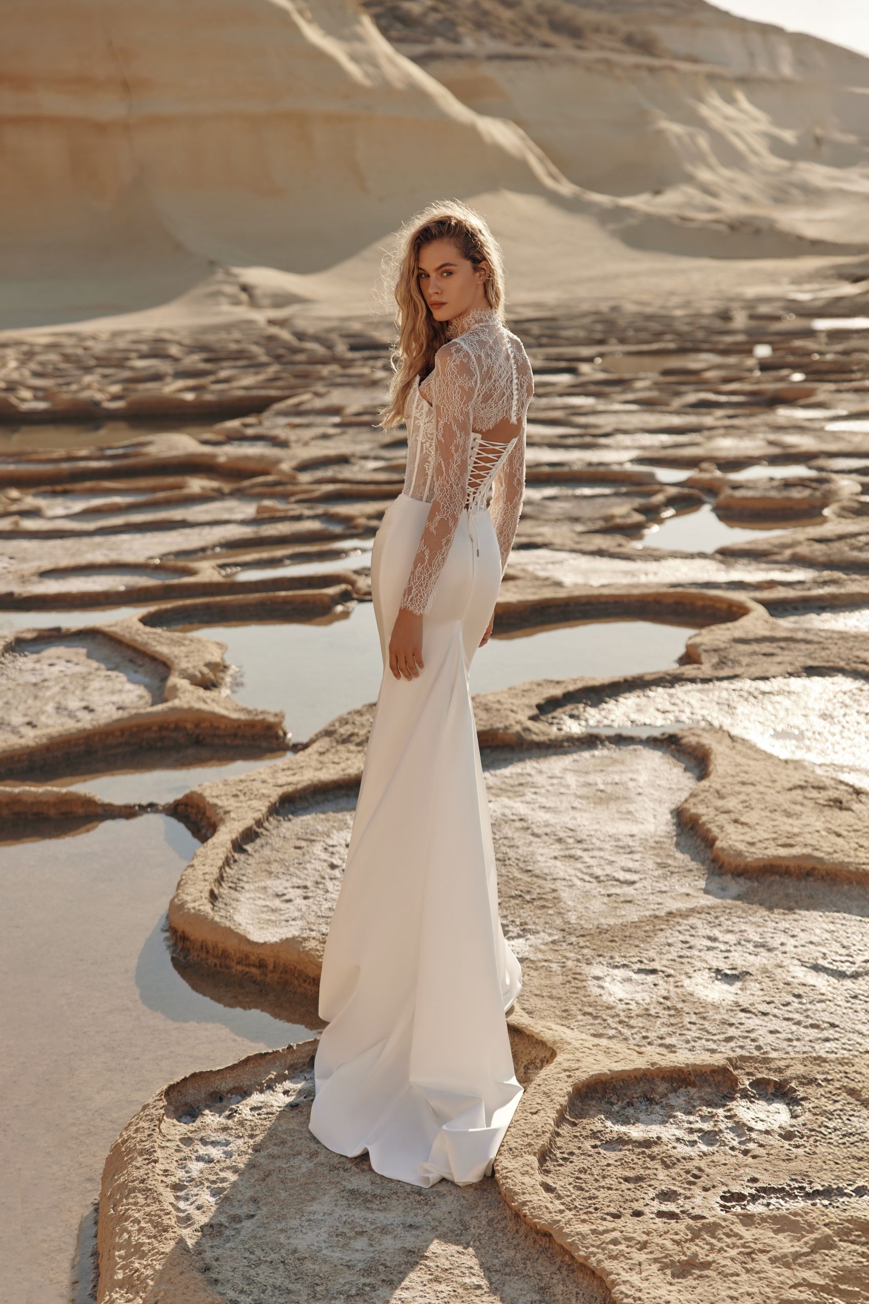 Rochia de mireasă KILIAN, creată de designerul internațional Eva Lendel, face parte din colecția Serenity, o colecție definită de echilibru, naturalețe și eleganță modernă.