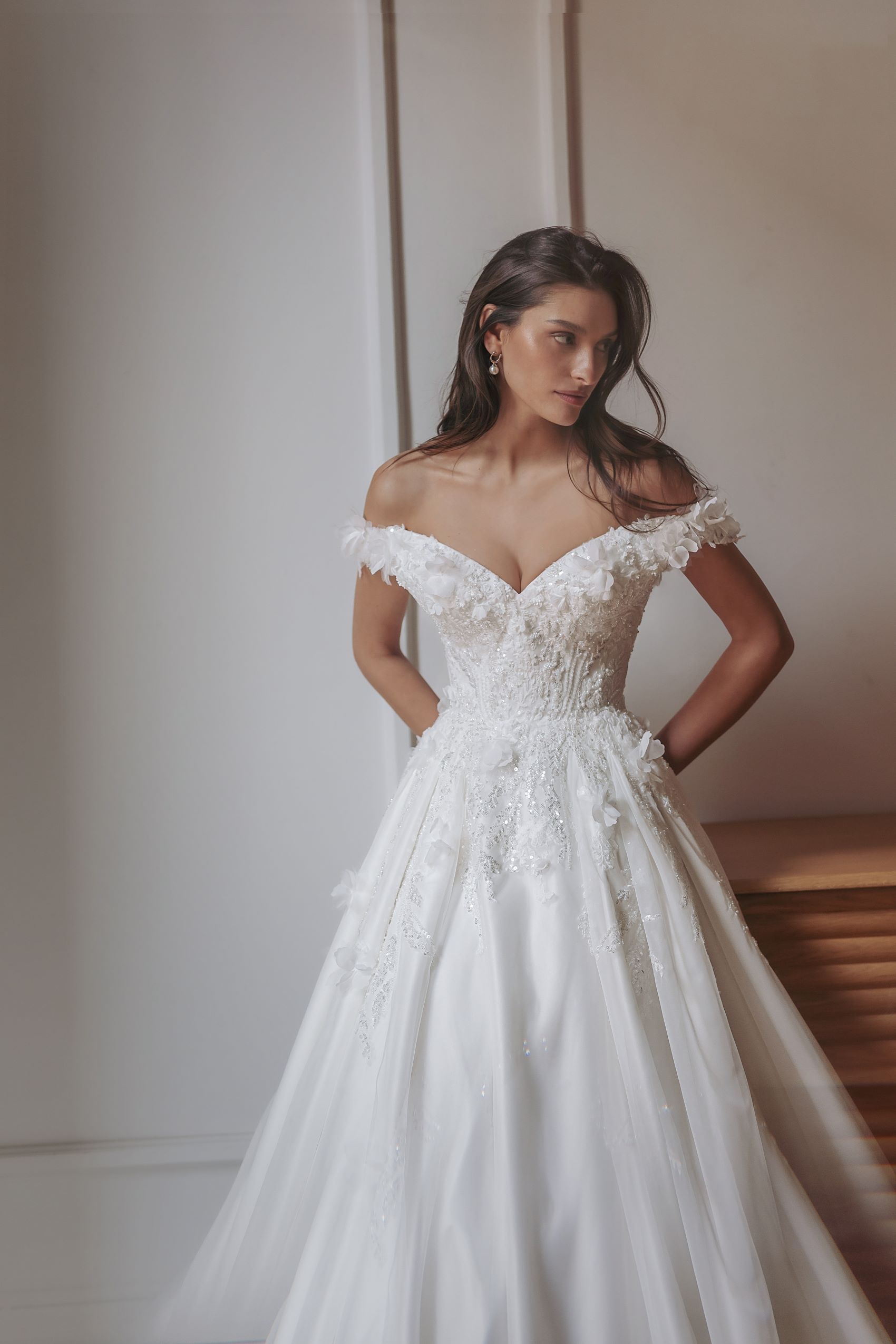Ramona — heart-shaped cold-shoulder corset-based dress with rich hand-made flower embroidery on the top and smooth skirt.