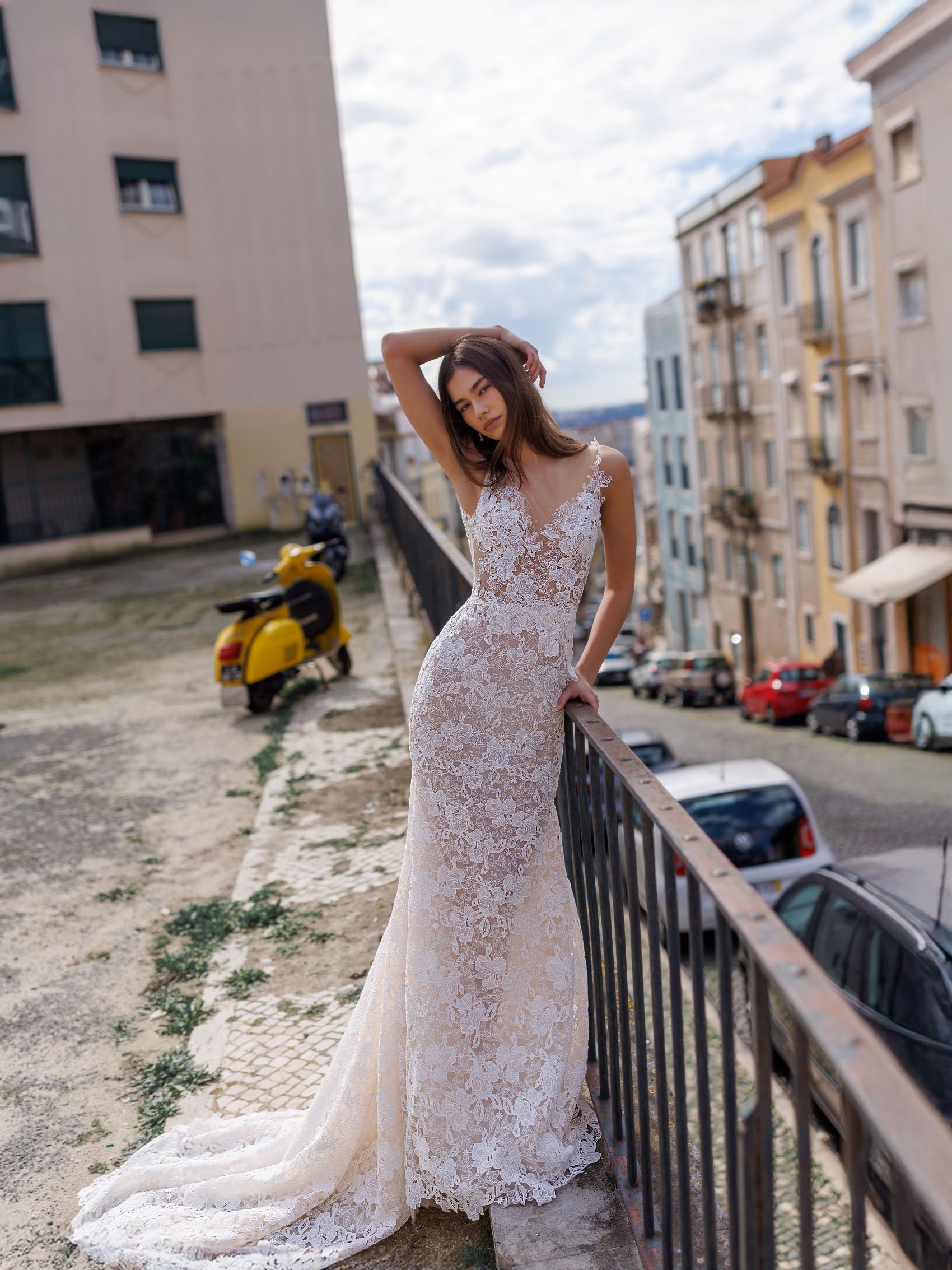 Creată din dantelă rafinată cu motiv floral, Renee este o rochie ce conturează silueta într-un mod natural și elegant. Decolteul în formă de V și transparențele subtile pun în valoare frumusețea feminină, în timp ce trenul lejer adaugă un aer romantic. Este alegerea perfectă pentru mireasa care iubește simplitatea sofisticată și detaliile care spun povești.
